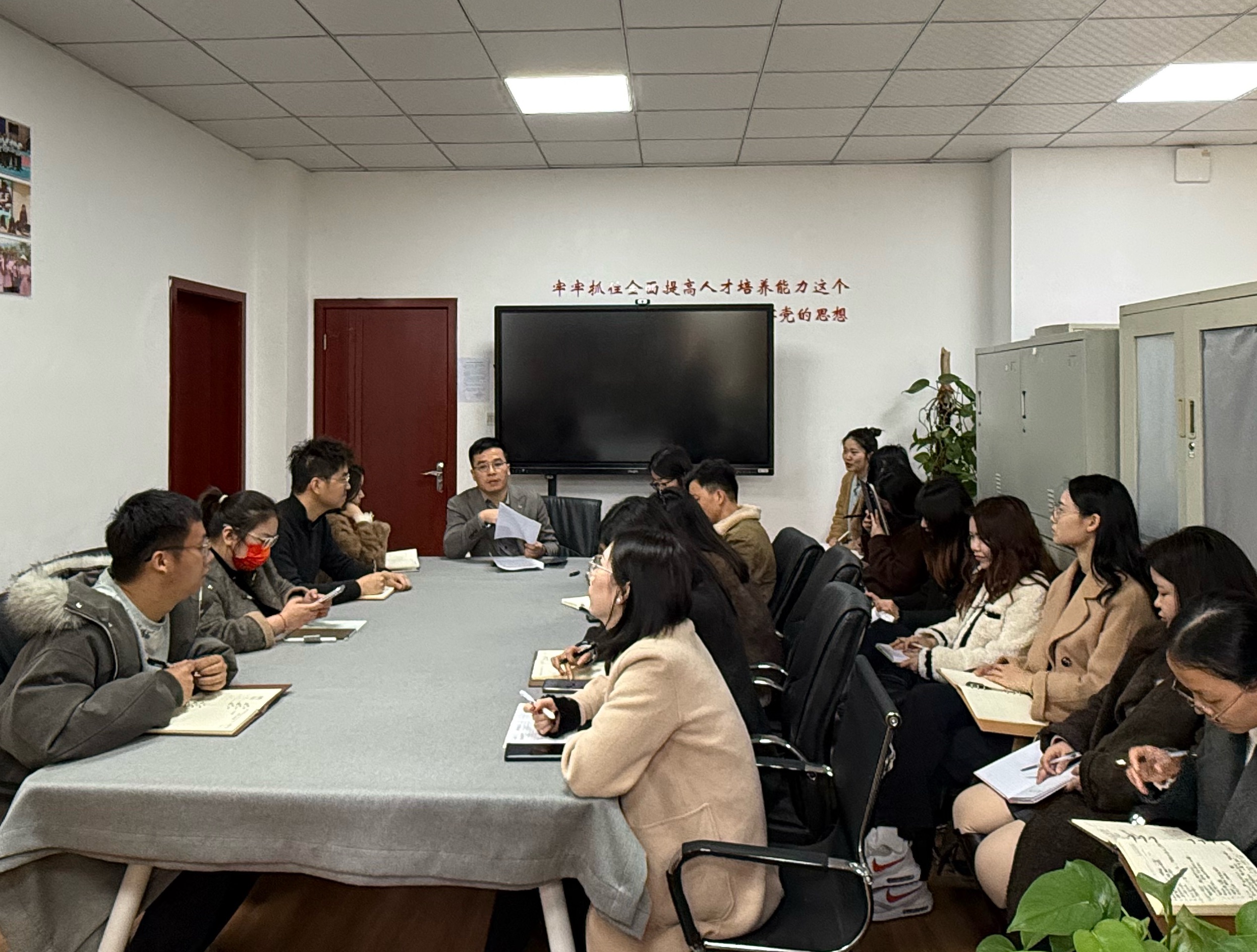 人工智能与大数据学院在行政楼A211召开2026年春季学期学工工作部署会,贾冲对本学期各学生工作板块的人员调整与职责分工进行详细介绍。