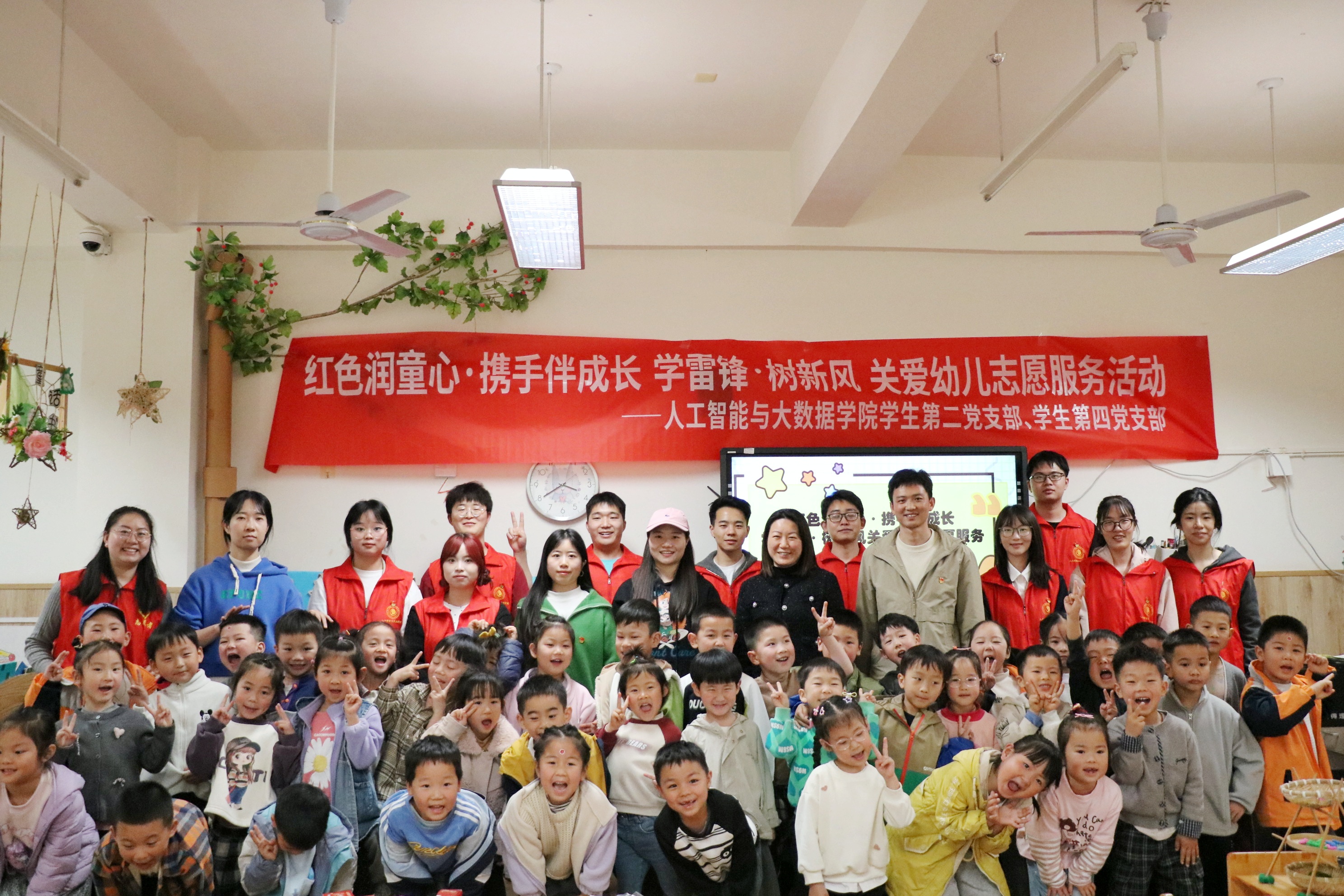 3月27日,成都文理学院人工智能与大数据学院学生第二、第四党支部携手金堂县第四幼儿园,开展“红色润童心・携手伴成长 学雷锋・树新风”关爱幼儿志愿服务活动,进一步弘扬雷锋精神和“奉献、友爱、互助、进步”的志愿服务精神,深化校地党建共建、推动校地协同育人的有益探索,为高校基层党组织服务地方学前教育事业搭建坚实桥梁。